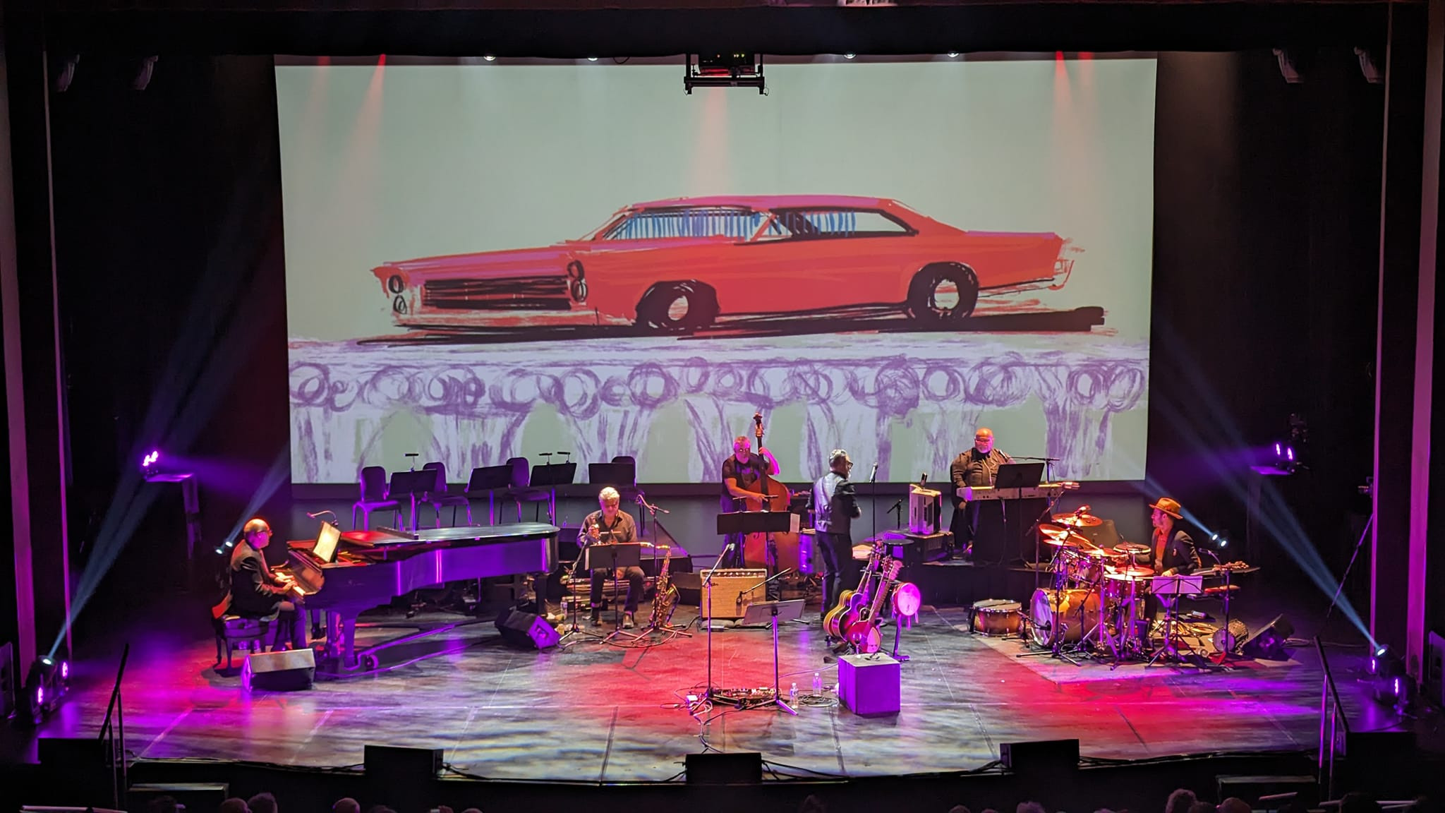 The Flato Markham Theatre Performance was the culmination of a show Dominic and I created in the year 2000 to mark the new millennium. Using digital technology to allow me to create paintings live and project them on to a large movie screen the audience could not only listen to the music from musical artist Dominic Mancuso, they could experience the visual art of Vince Mancuso live as well.